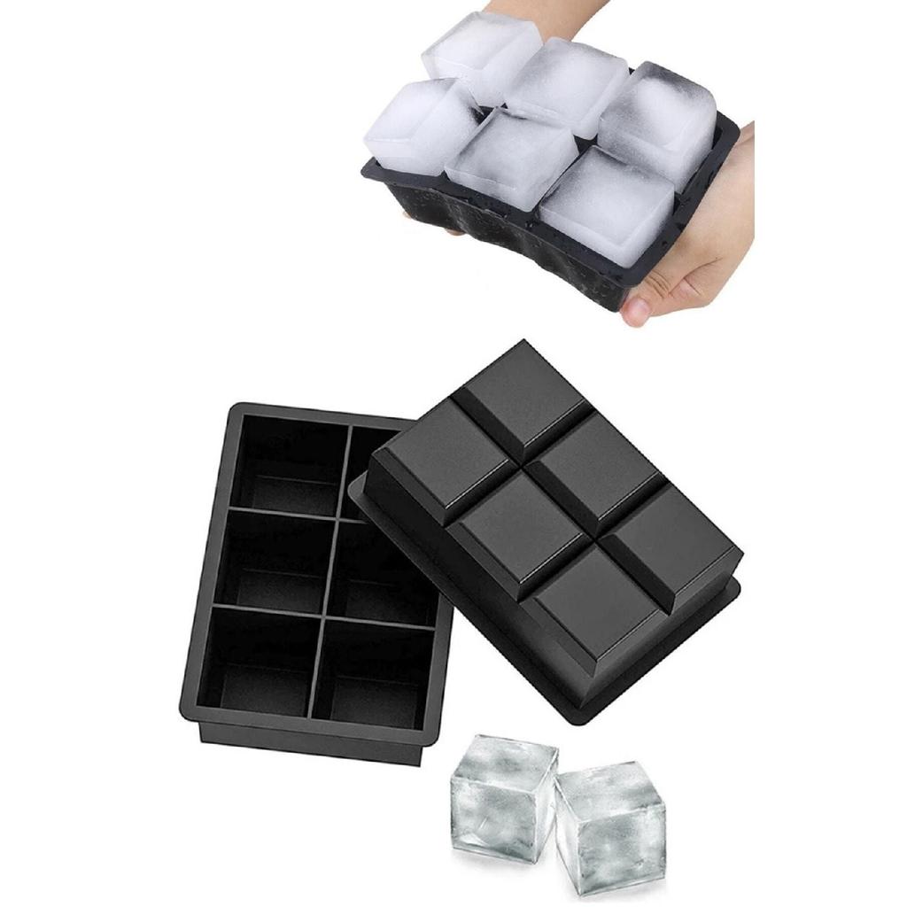 Силиконовая форма для льда большого размера с 6 отделениями - 6 шт. Черный силиконовый квадратный поднос для льда Презентационная форма для льда для коктейлей