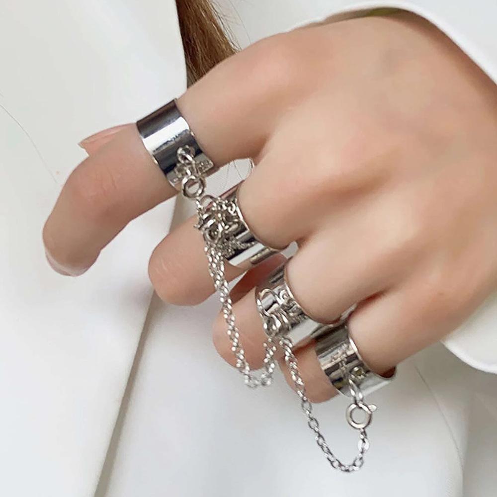 Соединенные мужское и женское кольцо, темное кольцо на указательном пальце, комбинация танцевальной цепочки, открытое кольцо в стиле панк-фанат