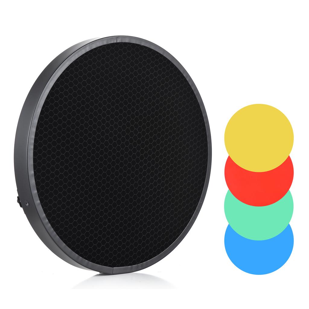 Сотовый абажур для фотосъемки, 60 градусов с 4 цветными фильтрами для 180-250 мм/7,1-9,8 дюйма