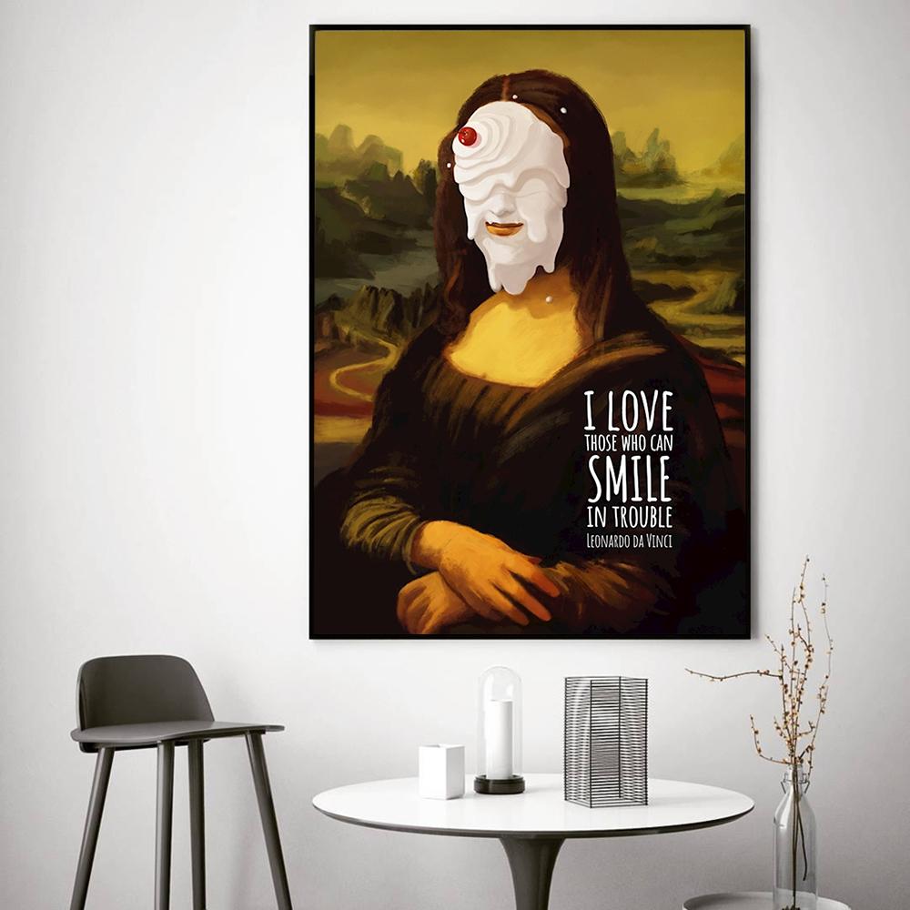Смешной постер с улыбкой Моны Лизы, настенное искусство, холст, живопись, постеры, классическая живопись, персонаж, смешные, интересные картинки, домашний декор