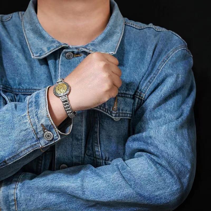 Серебряный цвет винтажный браслет с шестью символами True Tale Wheel Transfer из стерлингового серебра для мужчин, универсальная мода