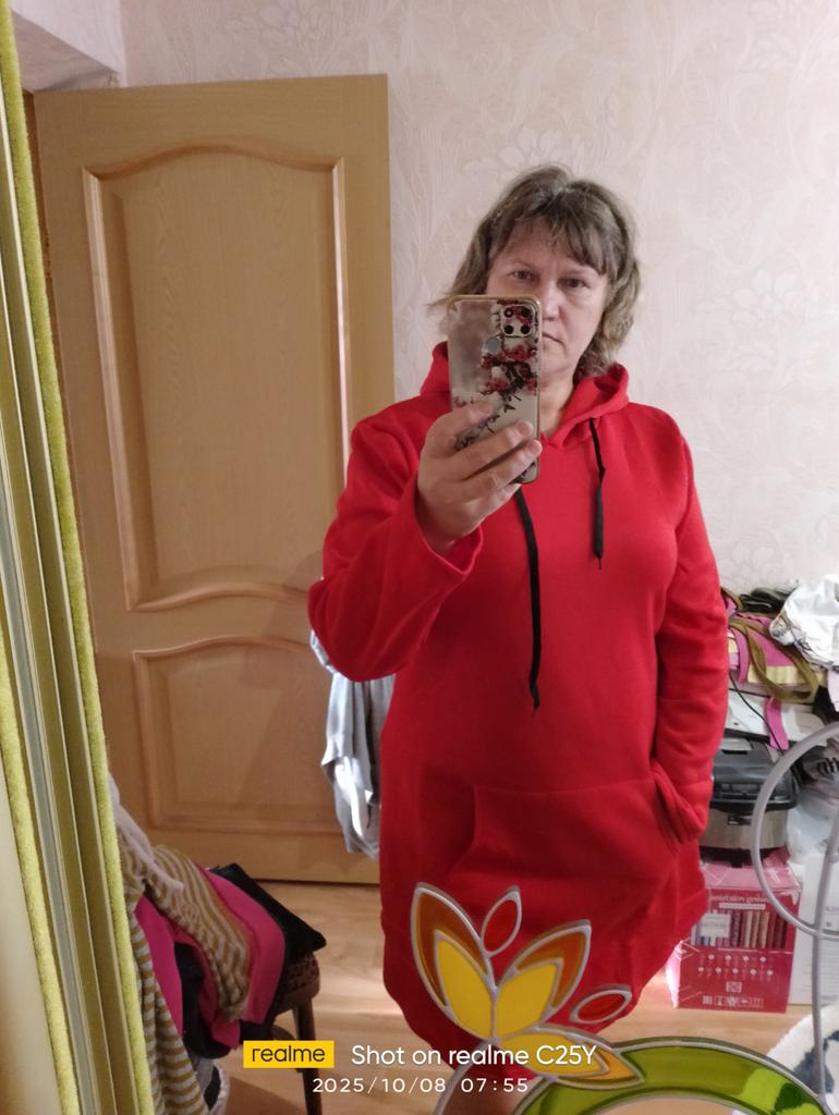 Размер нигде не стоит.Должно быть 118см, только 110см. обтянуло как гусеницу. Шили в подвале. Толстовка вся перекошенна! Карман пришит набекрень.Рукава длиннющие по колено, а плечи висят. Носить не смогу. Куда мне ее девать? Просто выброшенные денги