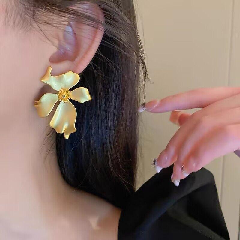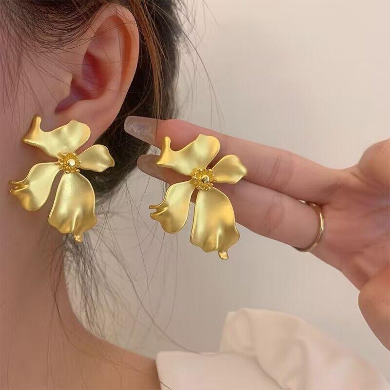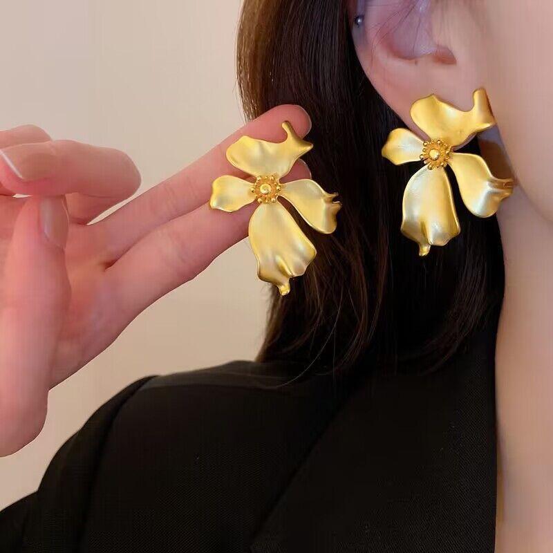 Бохо металлические серьги золотого цвета с большим цветком, преувеличенные геометрические серьги для женщин, роскошные ювелирные изделия, свадебные аксессуары, подарок