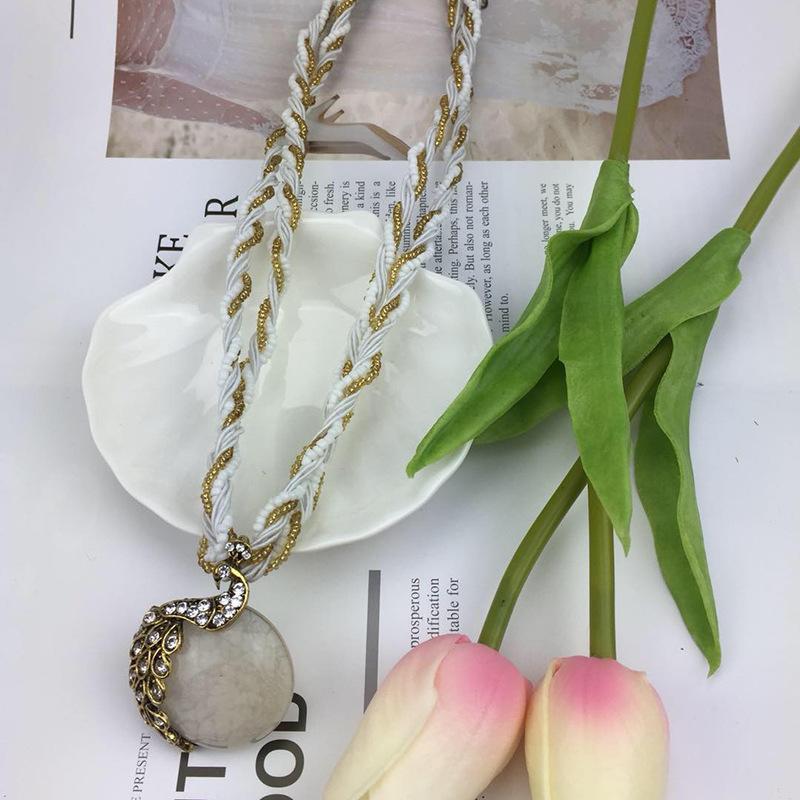 Рисовые бусины ручной работы, цепочка для свитера в этническом ретро-стиле, ожерелье с подвеской из драгоценных камней в виде павлина.
