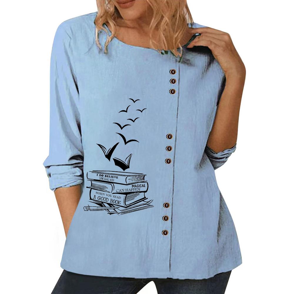 Женский модный хлопковый топ с множеством принтов, круглым вырезом и длинными рукавами — купить товар онлайн с бесплатной доставкой по всему миру!