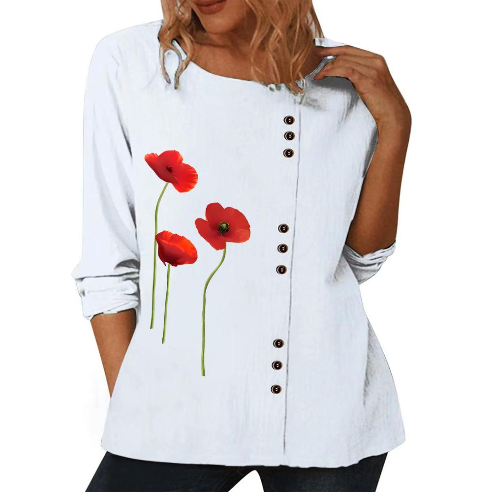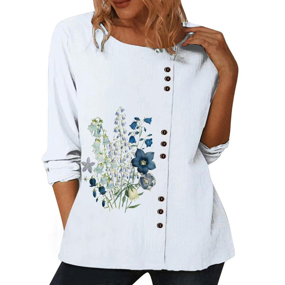 Элегантный женский хлопковый топ с множеством модных принтов, круглым вырезом и длинными рукавами