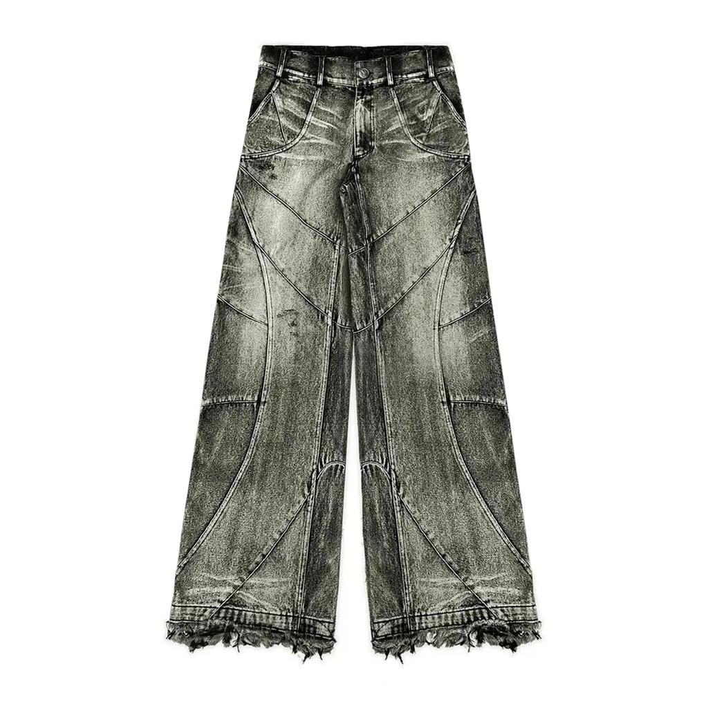 Унисекс, европейские и американские брюки с высокой талией, потертые джинсы с необработанными краями, мужские уличные свободные прямые широкие джинсовые брюки большого размера