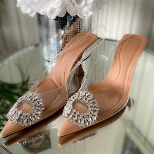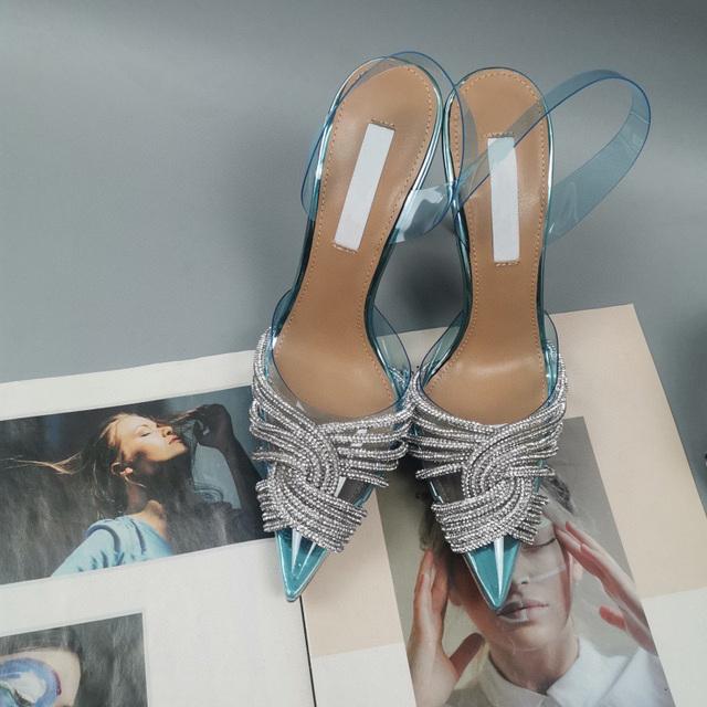 Женские сандалии с острым носком со стразами, новые женские прозрачные тонкие высокие туфли для вечеринок, женская пикантная обувь из искусственной кожи на мелкой платформе