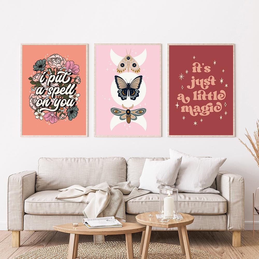 Магия Цитата Текст Жест Художественная печать Хэллоуин Ведьма Осень Бабочка Бохо Осенний декор Холст Картина Фокус-покус Звезды Плакаты