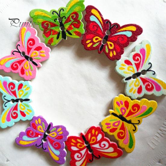 50 шт. 2 отверстия красочные деревянные пуговицы в форме бабочки для шитья одежды DIY Декор