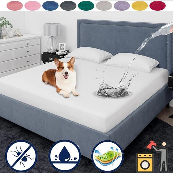ГОРЯЧАЯ супер водонепроницаемая простыня наматрасник, постельные принадлежности, регулируемый защитный чехол, чехол для кровати с глубоким карманом, водонепроницаемое однотонное покрывало
