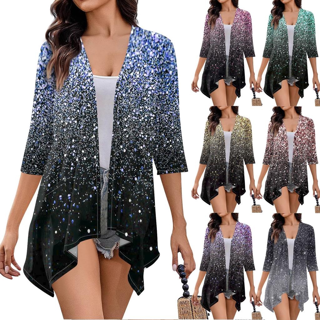 Женский кардиган неправильной формы с принтом, рукавами три четверти и карманной курткой — купить товар онлайн с бесплатной доставкой по всему миру!