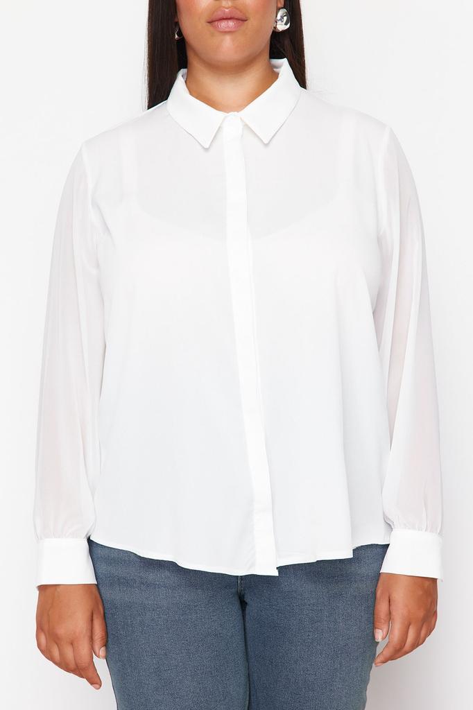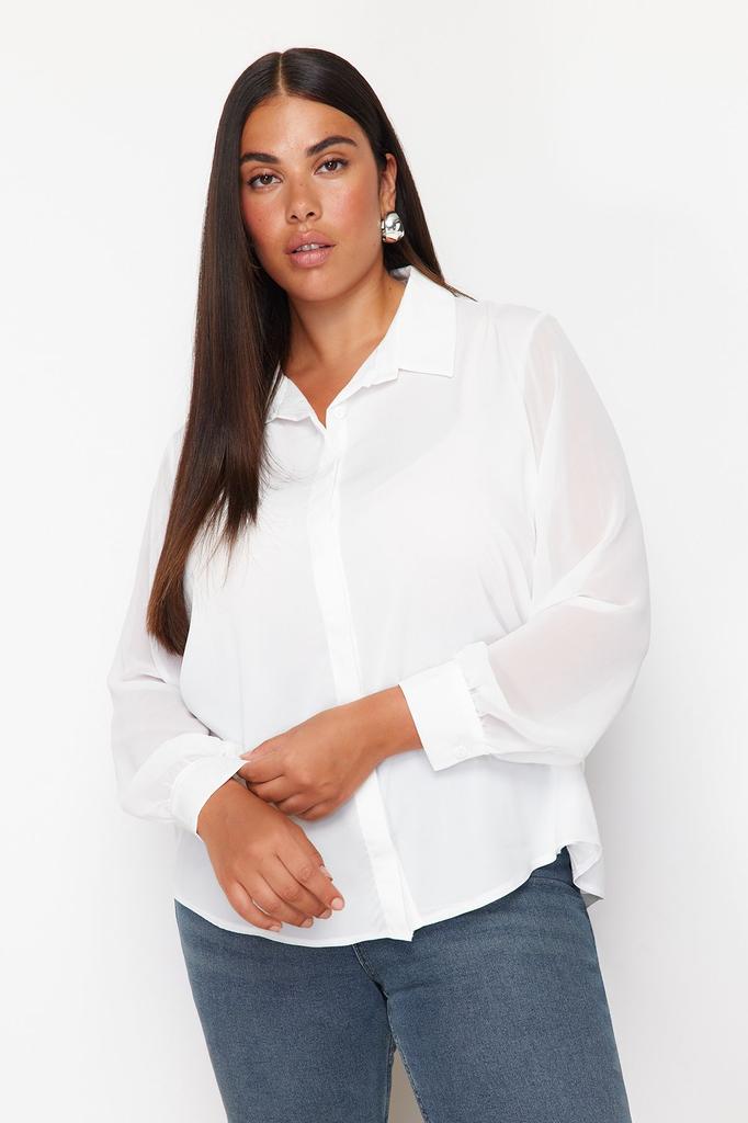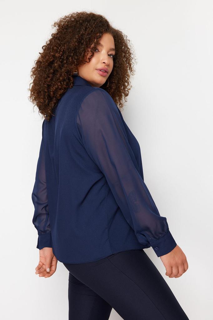 Женская стильная черная шифоновая тканая рубашка больших размеров на пуговицах с длинными рукавами
