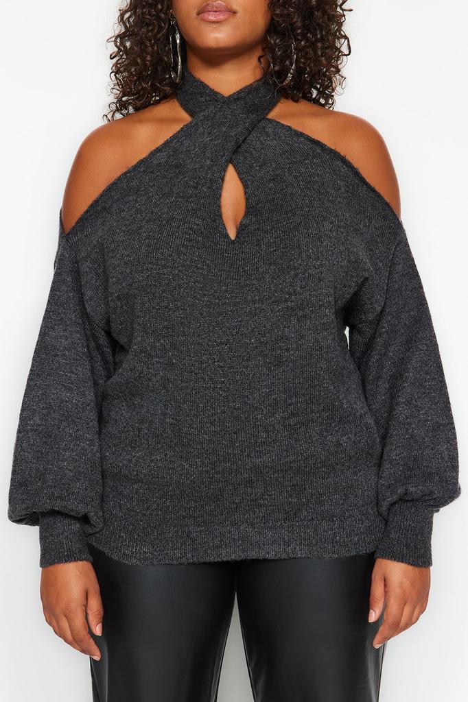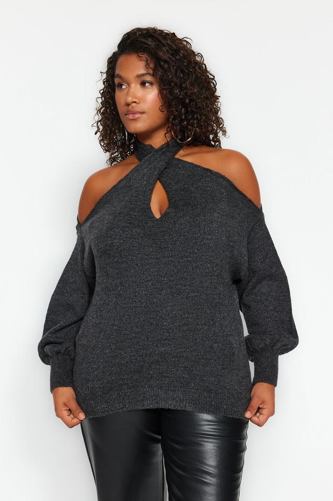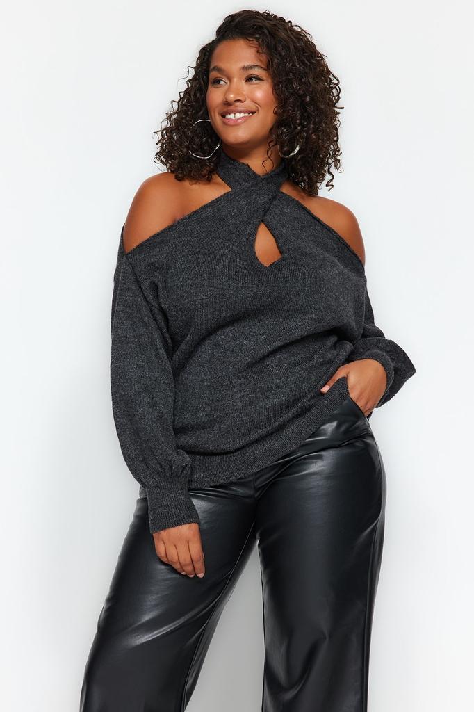 Женский стиль, большие размеры, антрацитовый трикотаж, свитер больших размеров