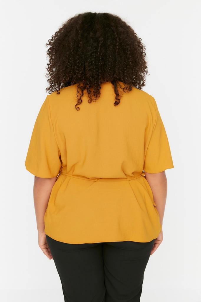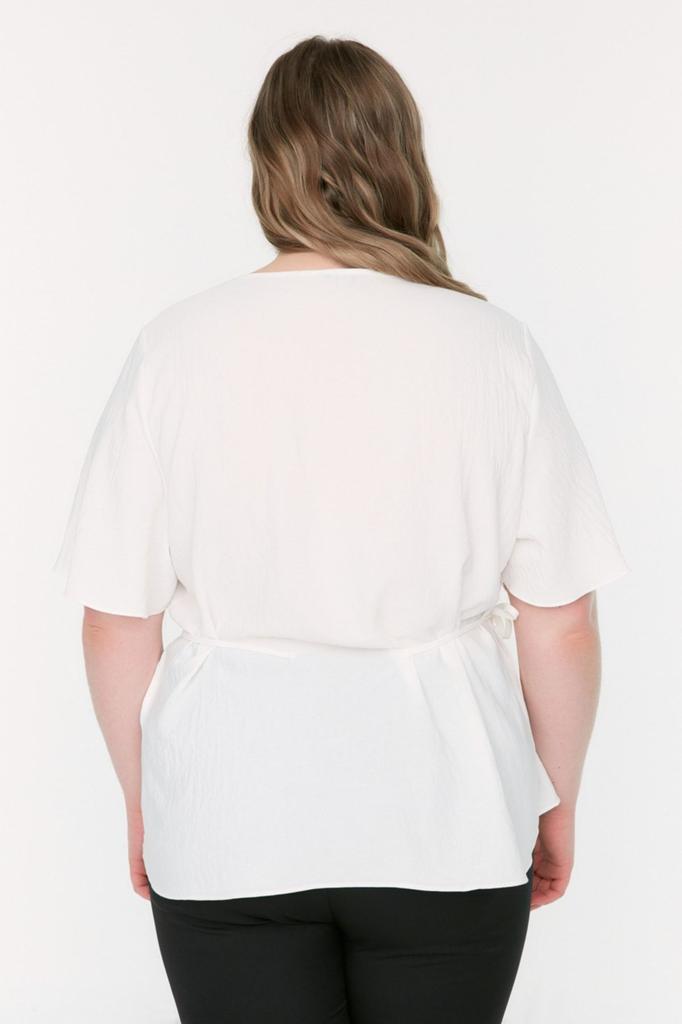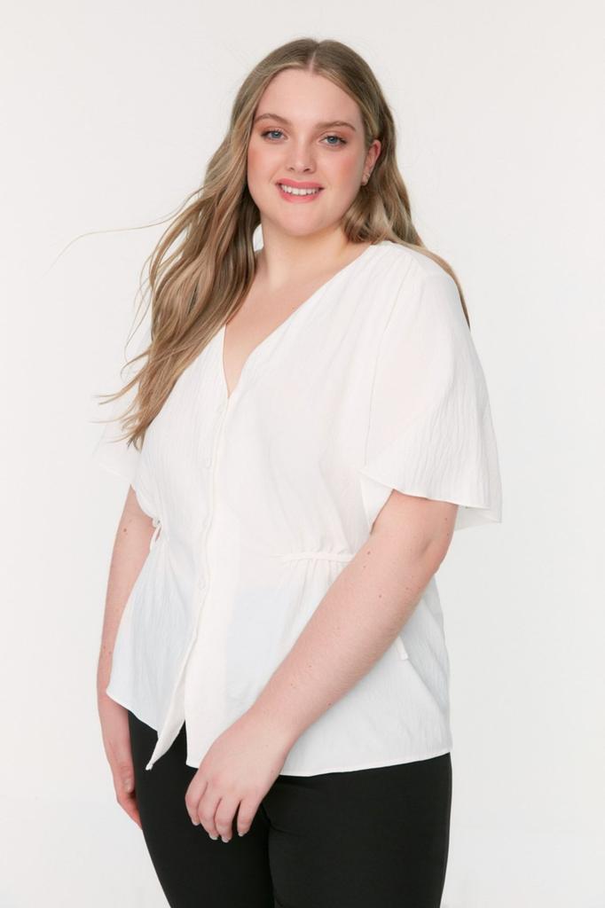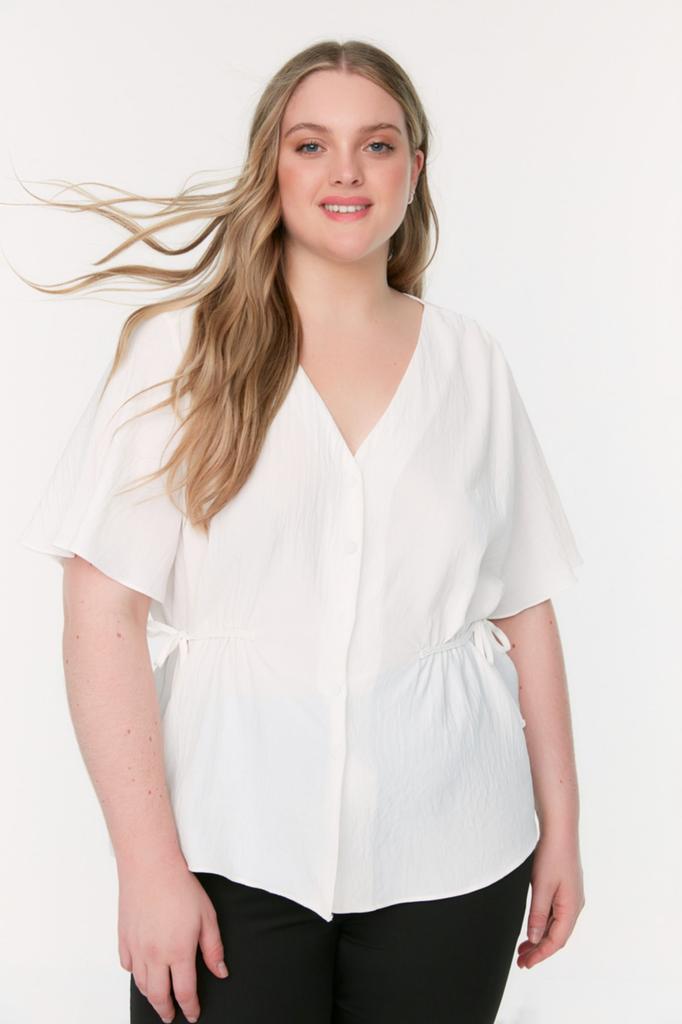 Женская блузка больших размеров из тканой ткани с v-образным вырезом и завязками цвета экрю