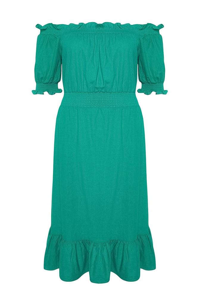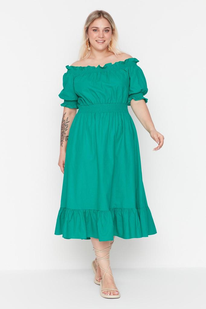 Женское зеленое плиссированное тканое платье больших размеров