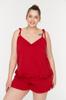 Женский трикотажный пижамный комплект больших размеров цвета фуксии с завязками