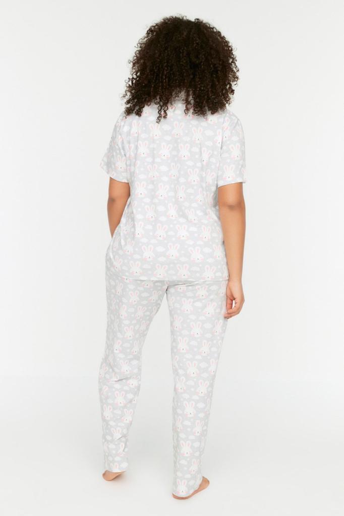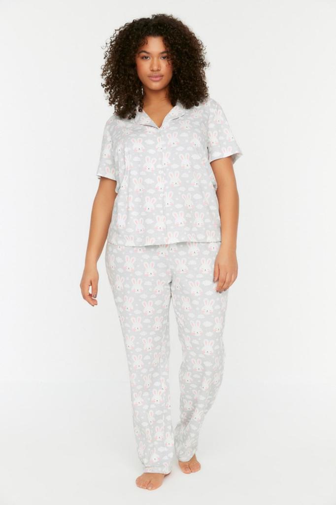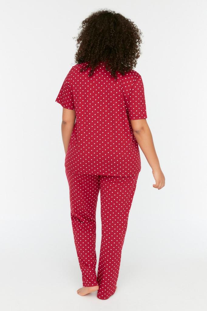 Женский стиль, большие размеры, бордовый красный вязаный пижамный комплект на пуговицах с принтом