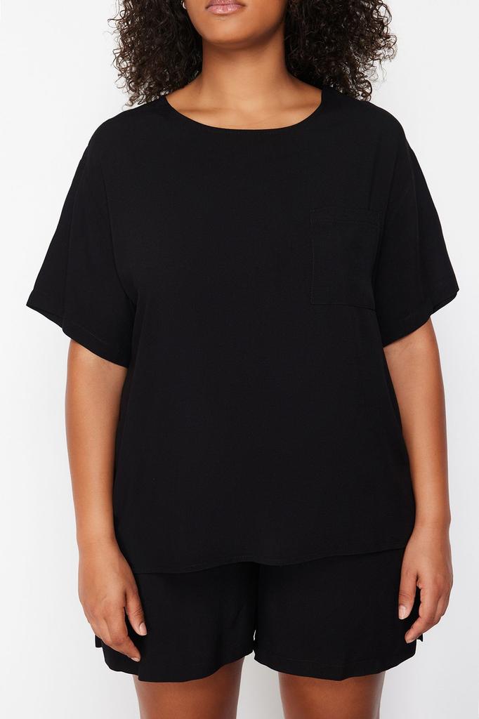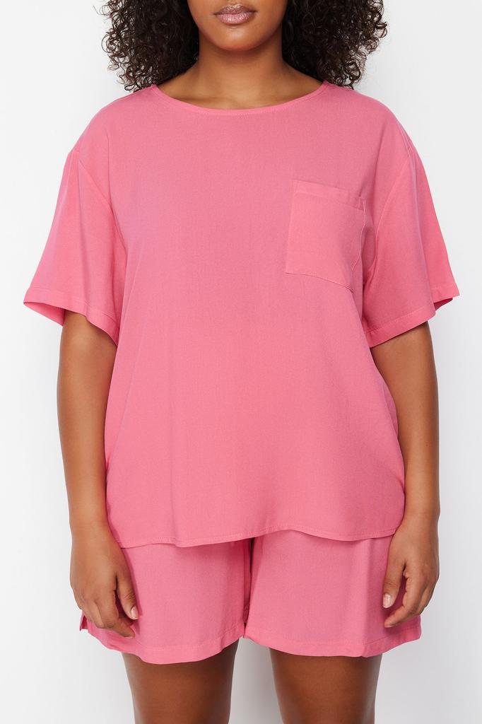Женский стиль, большие размеры, фуксия, тканый пижамный комплект с круглым вырезом