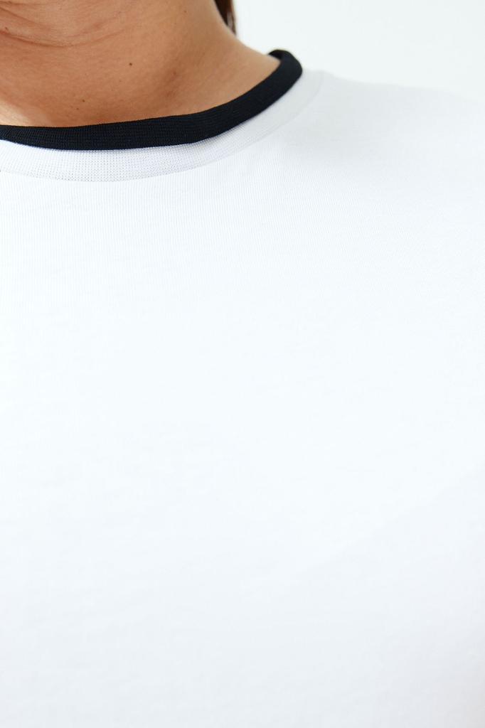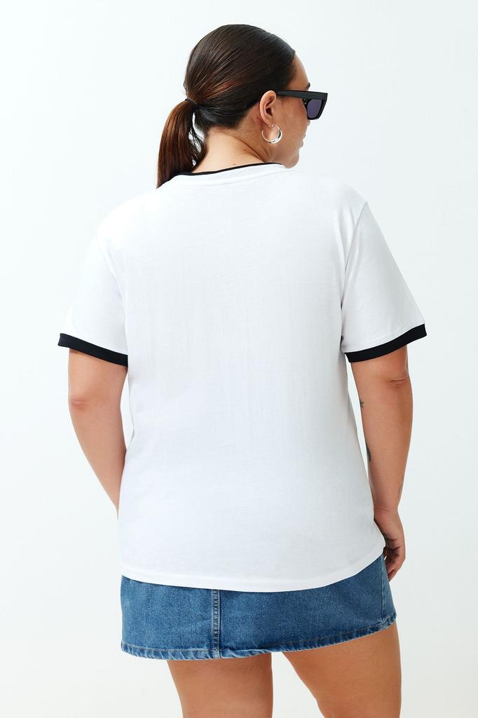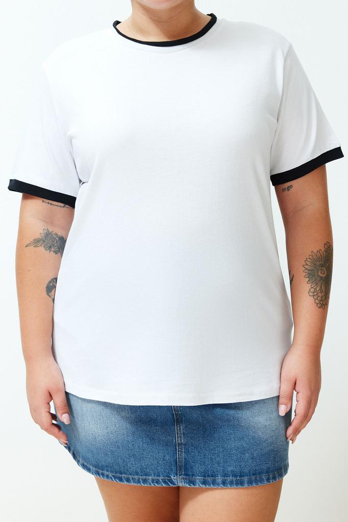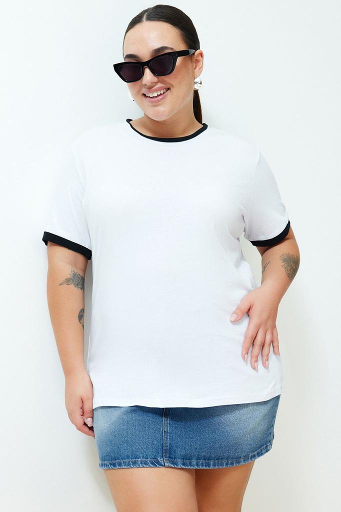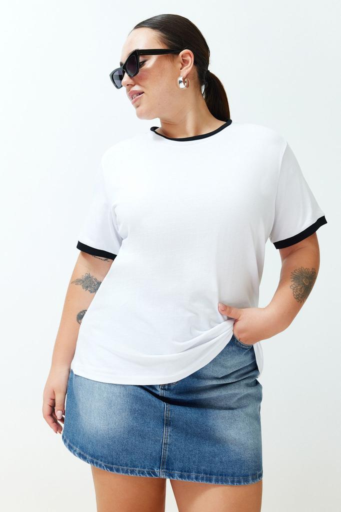 Женский стиль, большие размеры, белая трикотажная футболка бойфренда с цветными блоками