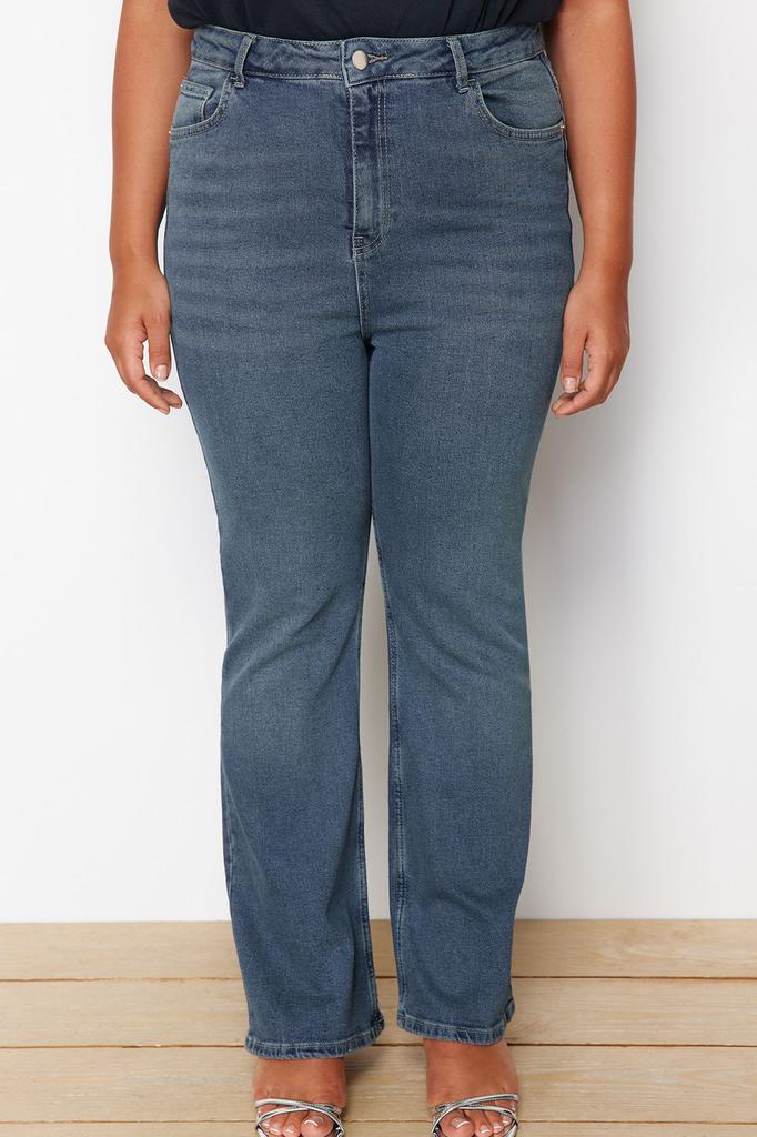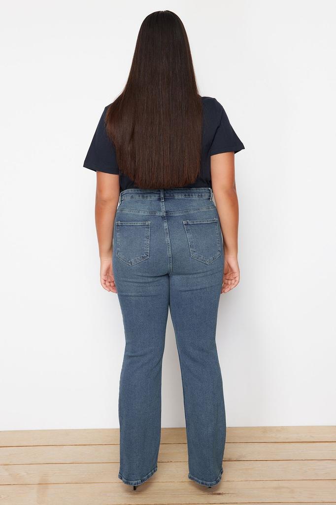 Женские синие расклешенные джинсы больших размеров с высокой талией