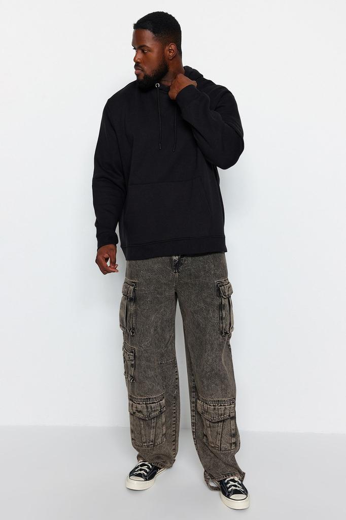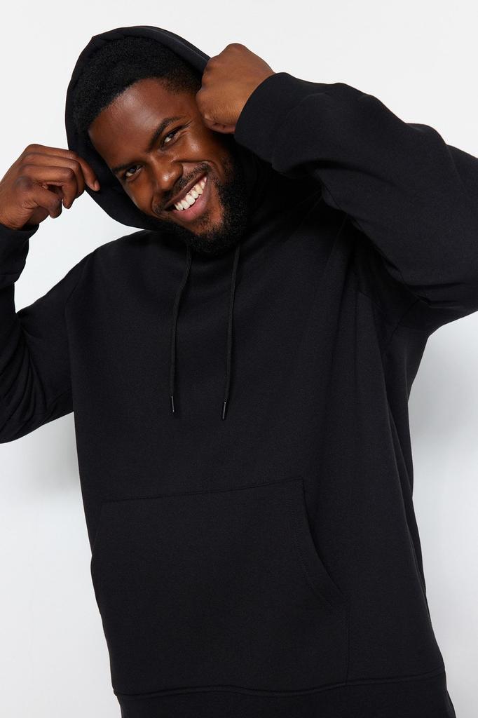 Мужской стиль, большие размеры, черный, большой размер, обычный нормальный крой, удобная толстовка с капюшоном и флисовой подкладкой