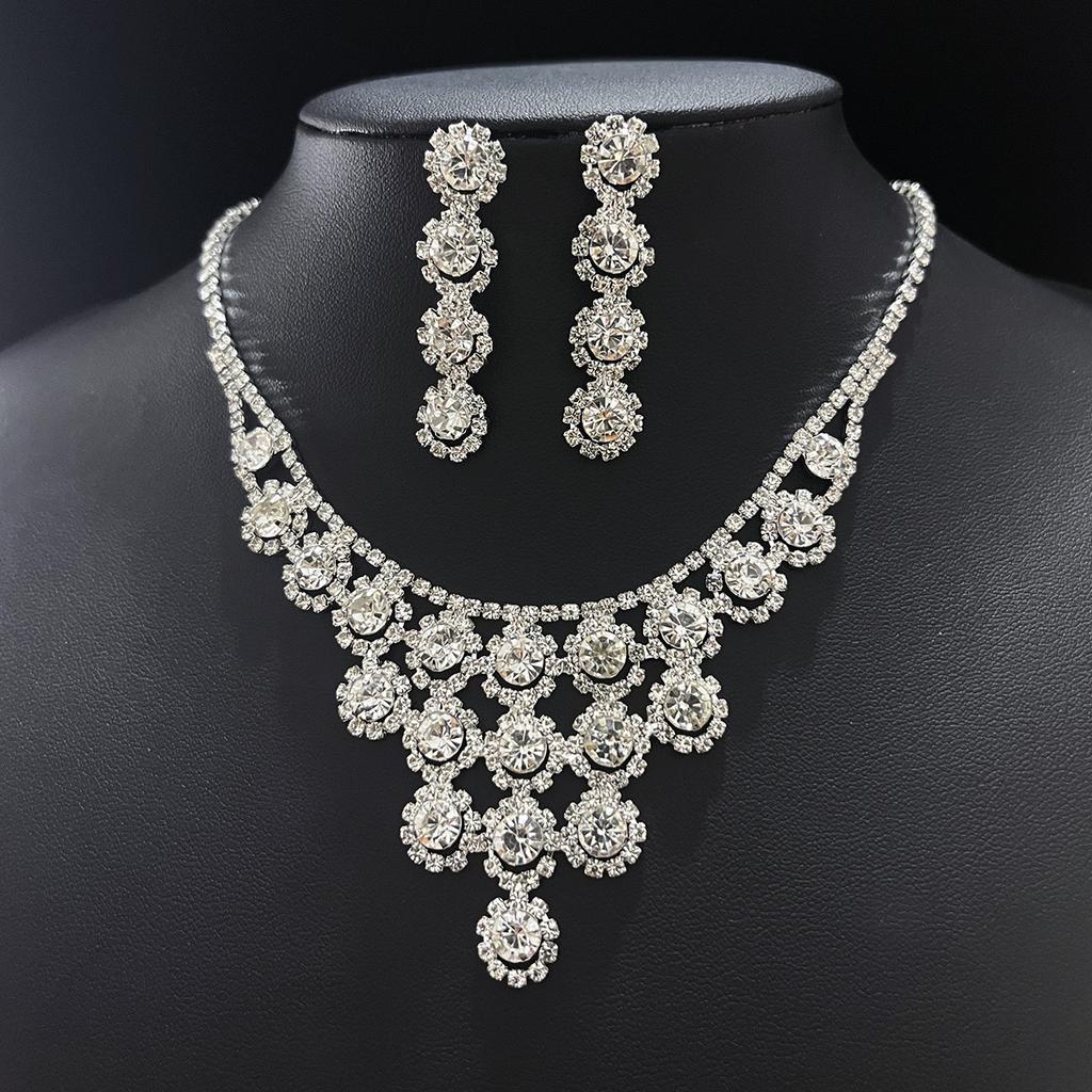 Ювелирные изделия с бахромой из геометрического хрусталя, свадебные аксессуары, серьги, ожерелье, комплект свадебного платья, аксессуары для банкета