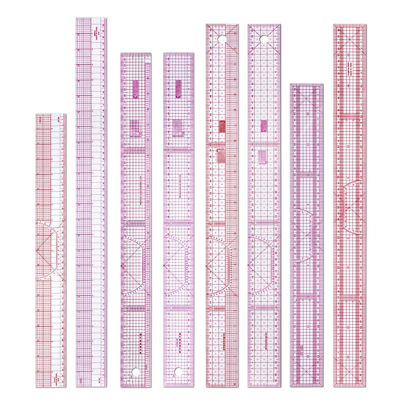 Швейная линейка в стиле ампир и французская кривая, используемые для составления выкроек, сборка деталей дизайнерской линейки из прозрачного пластика.
