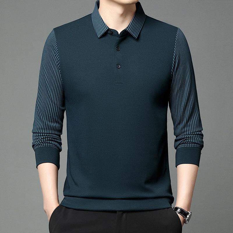 Модная мужская футболка с длинными рукавами в полоску в корейском стиле, модный и универсальный лацкан, свободный низ среднего возраста