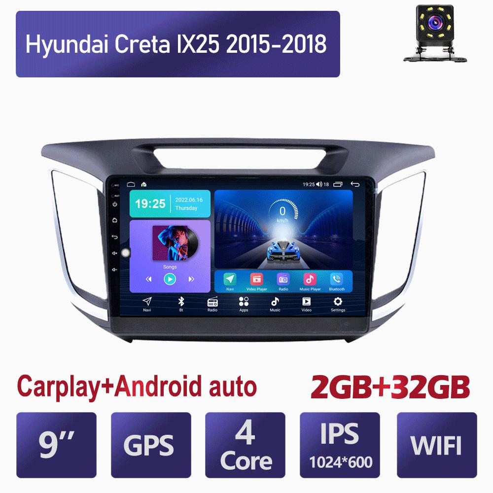 10-дюймовый Android Carplay для Hyundai Creta Ix25 2015-2018, автомобильный радиоприемник, мультимедийный видеоплеер, GPS-навигация, WIFI, 2 + 32 ГБ