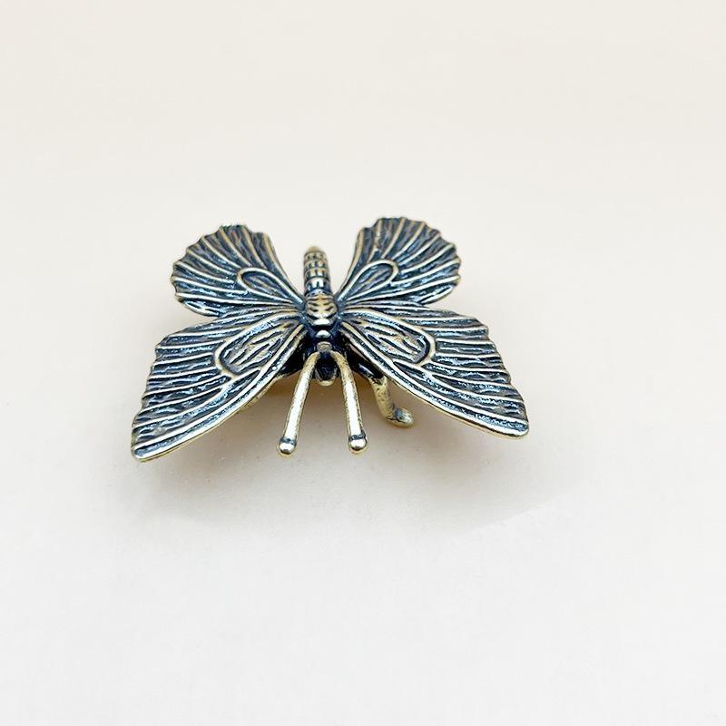 Твердые статуэтки бабочек из чистой латуни, миниатюрные настольные украшения, античная медная статуя насекомых, украшение для дома, аксессуары для рукоделия