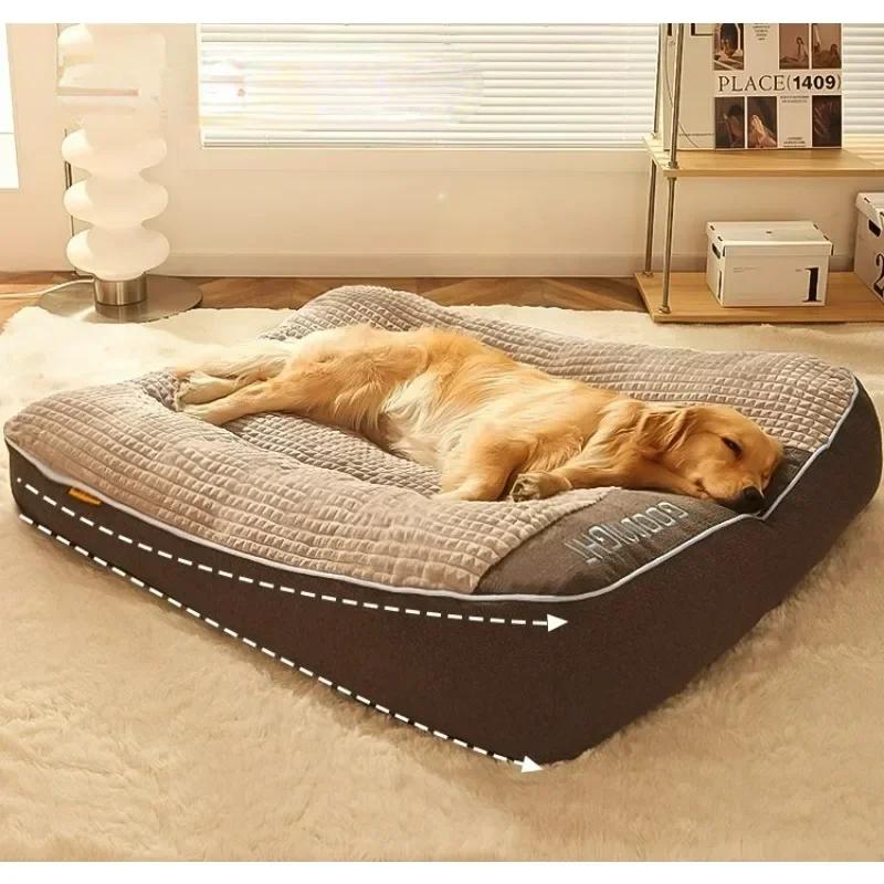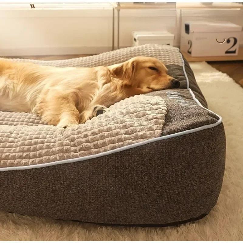 Всесезонный универсальный диван для собак среднего и большого размера, золотой меховой коврик для кровати, домик для домашних животных, зимний теплый спальный коврик, аксессуары