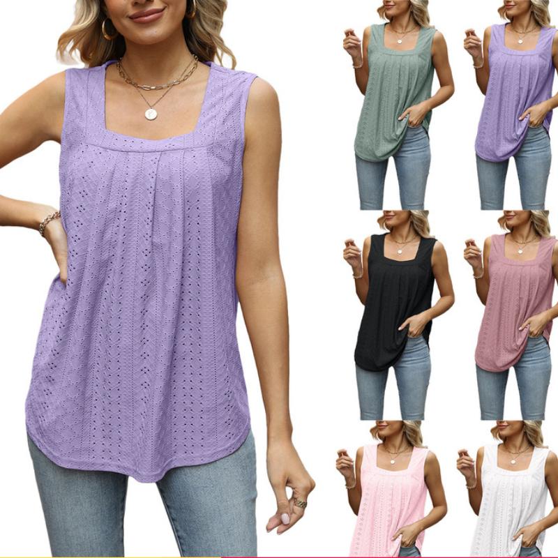 Полая однотонная футболка без рукавов для женщин, летние топы на бретелях с квадратным вырезом и свободной талией для работы, отдыха, мягкая удобная футболка, дышащий пуловер, топ