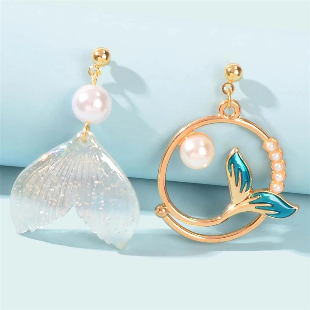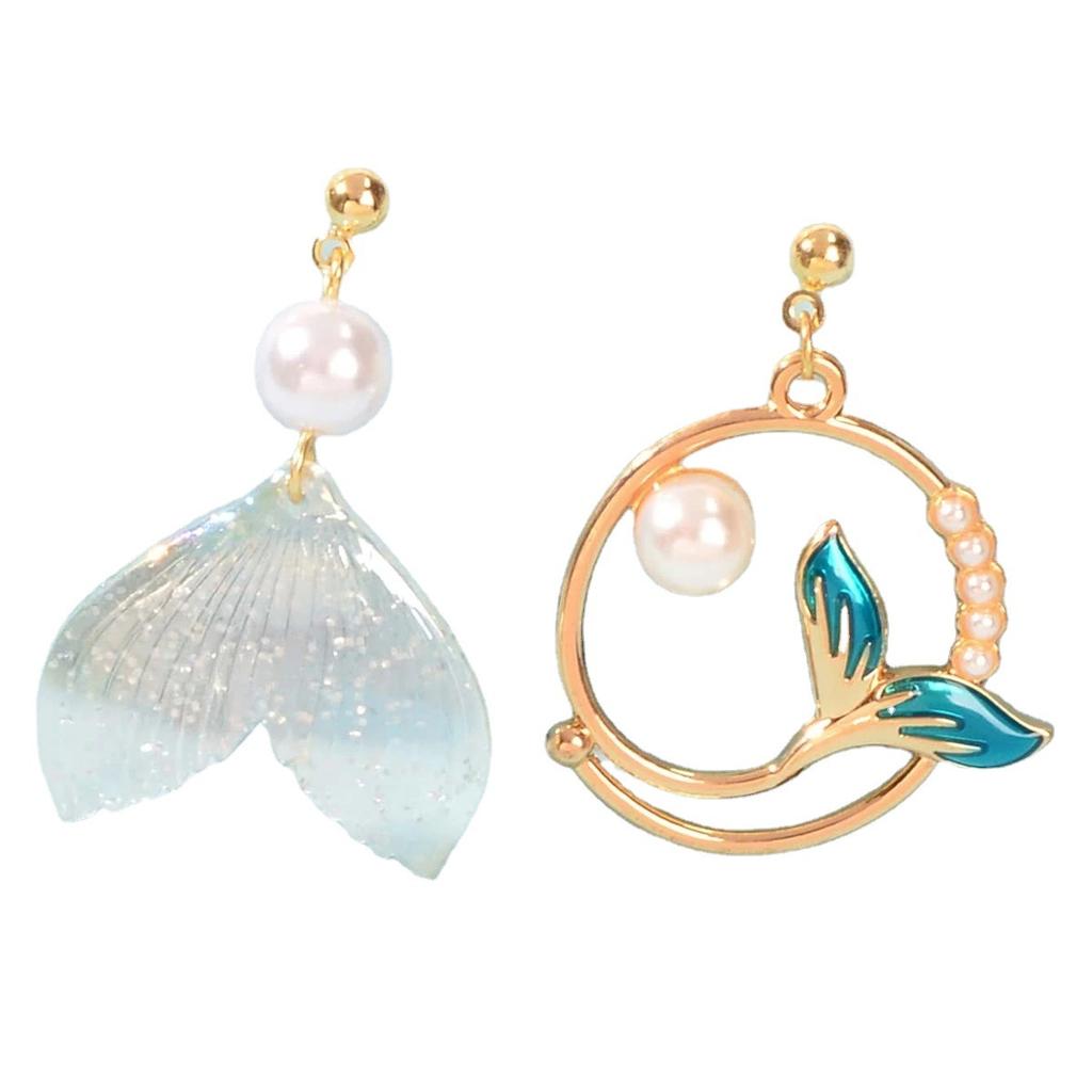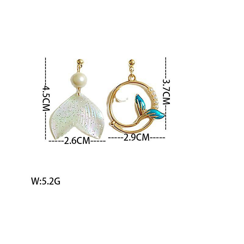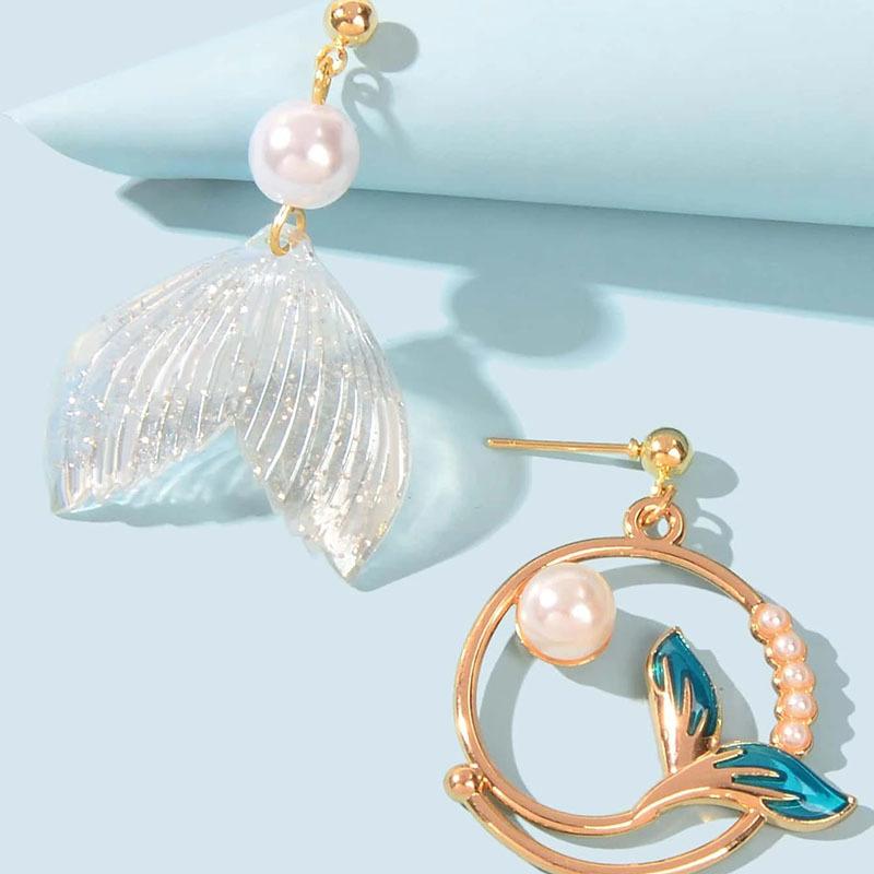 Простые жемчужные серьги Хвост дельфина и кита Асимметричные серьги Персонализированные серьги-гвоздики Русалка