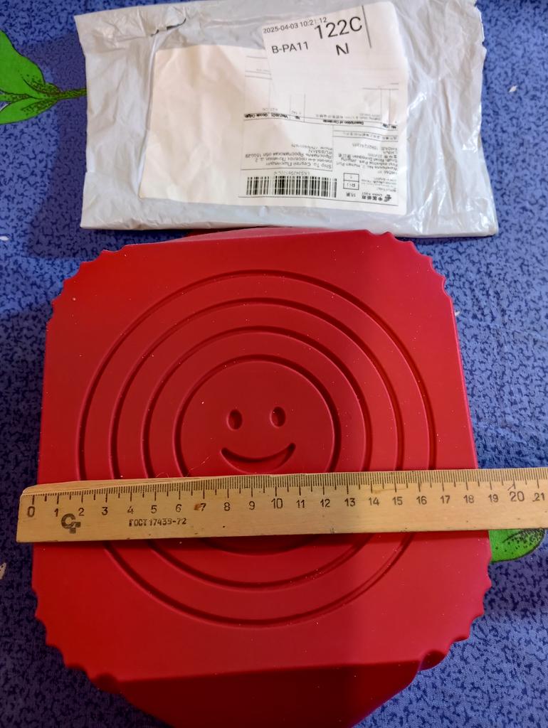 Всем доброго времени суток🙌🙌🙌 🙋♀️!!! Получила силиконовую форму для выпечки, купила из за оригинального смайла на дне формы 😉😊. Форма целая, правда цвет не такой как на промофото, там оранжевый, а на самом деле коричневый. Но самое главное прислали форму не того размера, я заказала размер 22.5 х 20 х 5.5,по факту форма 20 х 18.5 х 5.5. А у меня уже есть такого размера, хотела чуть больше, но продавец обманул🧐🤨☹️😤😡. ВСЕМ МИРА, ДОБРА И УДАЧНЫХ ПОКУПОК🛍 🎁🎁🎁💓!!!