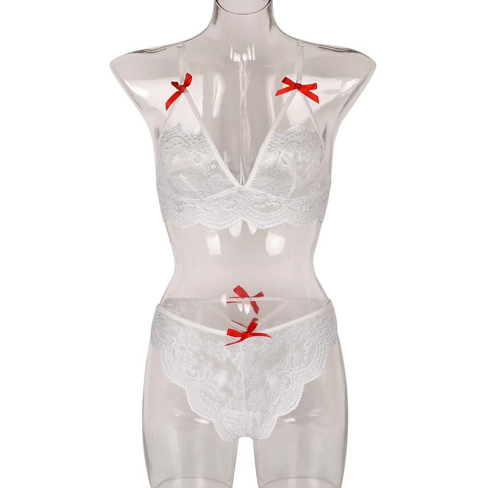 МОДА Сексуальные экзотические комплекты Женское нижнее белье 3 шт. Бюстгальтер и трусики с подвязками Прозрачные комплекты нижнего белья Кружевные экзотические костюмы Комплект бюстгальтера Babydolls