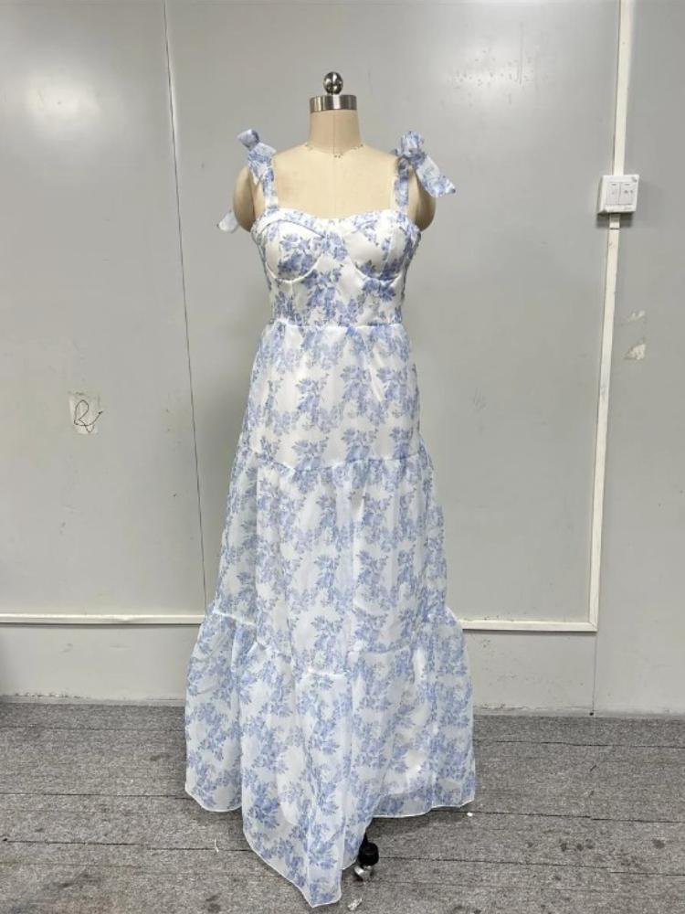 Женское французское модное свободное платье без рукавов с цветочным принтом, темпераментное кружевное пасторальное женское элегантное платье с высокой талией