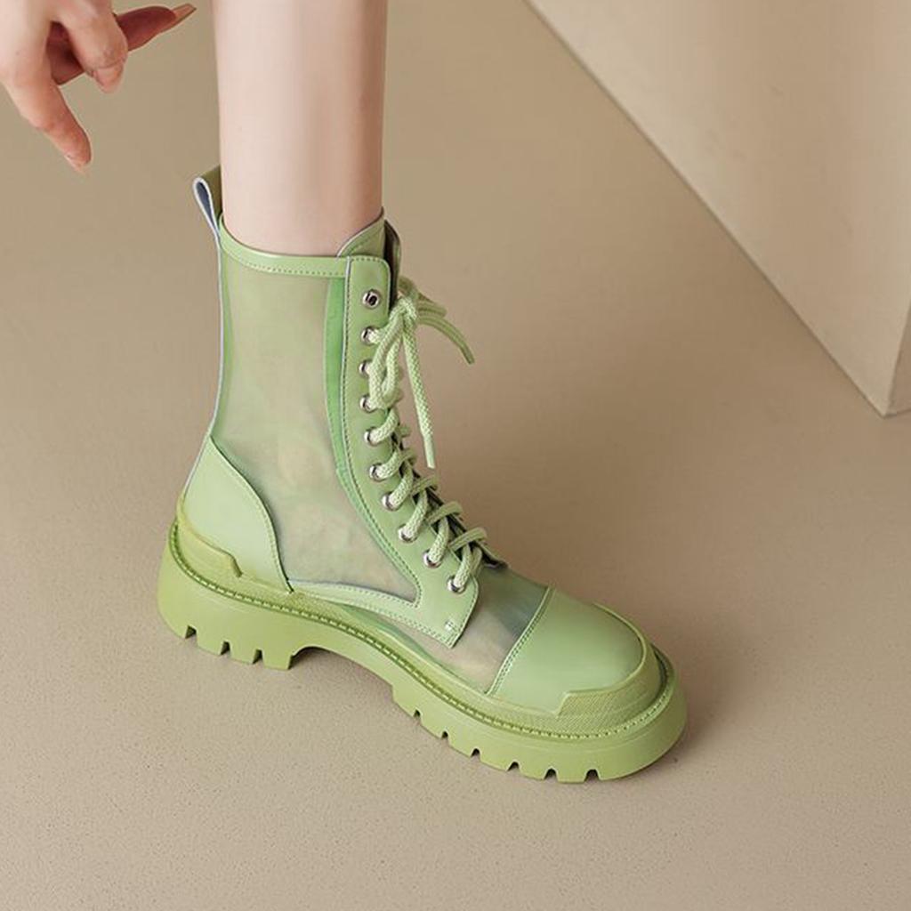 Летние ботинки Krazing Pot из овчины с круглым носком, модные ботильоны из сетчатой ткани с заклепками и перекрестной завязкой — купить товар онлайн с бесплатной доставкой по всему миру!