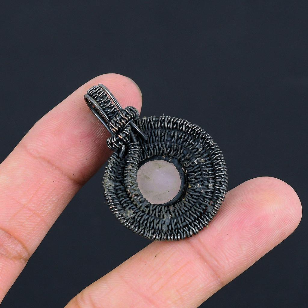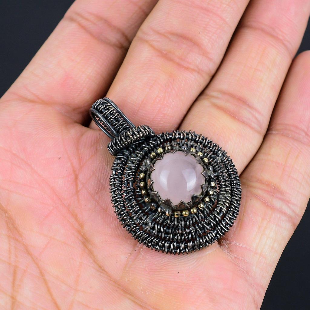Очаровательный розовый кварцевый драгоценный камень, ручная работа, медная проволочная обертка, ювелирное изделие, потрясающий кулон для женщин
