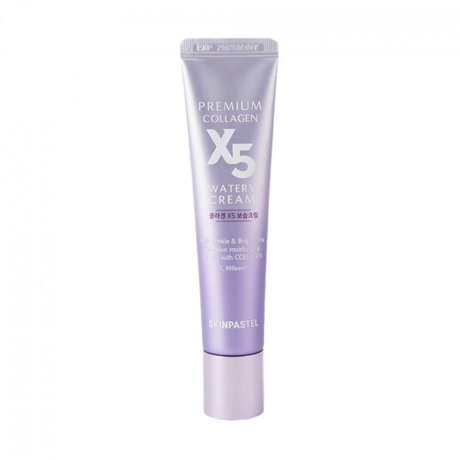 Skinpastel's Collagen X5 Watery Cream — это питательный крем, который улучшает грубую текстуру кожи и сохраняет ее живой, упругой и влажной, направляя 5-кратное количество коллагена глубоко в кожу, обеспечивая насыщенную влагу и питая сухую кожу.