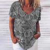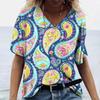 Винтажный топ с принтом, женская уличная одежда с короткими рукавами, летняя футболка, женская модная повседневная футболка с v-образным вырезом, женская одежда большого размера Y2k