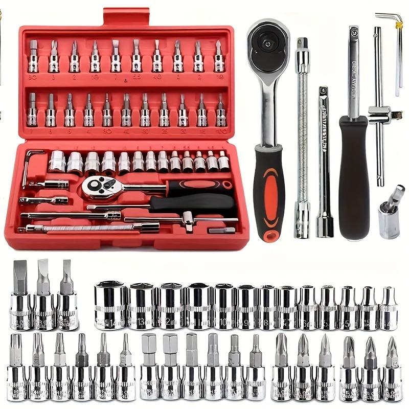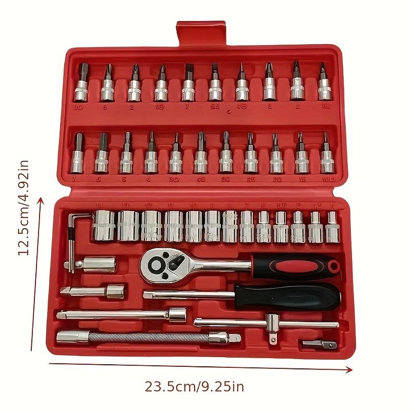 46 шт. 1/4 дюйма, набор ключей с храповым механизмом, с набором головок с битами, метрическими и удлинителем для авторемонта и бытового использования, с футляром для хранения