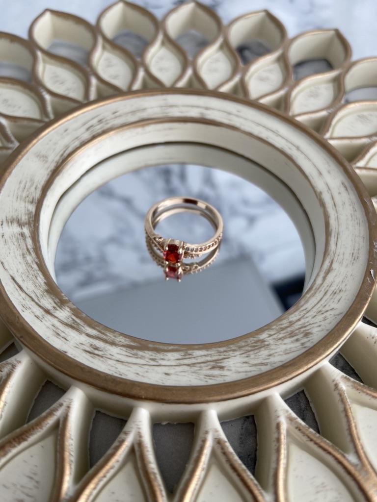 Красивое, маленькое ,аккуратное кольцо похожее на золотое, фото не передаёт всей его прелести ,камень не бордовый а ближе к оранжевому ,красно-оранжевый какой-то можно брать.