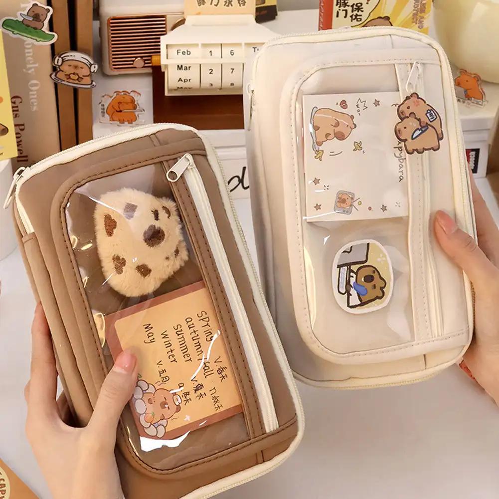 Kawaii прозрачный пенал большой емкости, водонепроницаемая коробка для ручек для девочек, косметичка, канцелярские принадлежности, офисные школьные принадлежности
