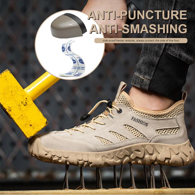 Мужская летняя рабочая обувь, дышащая защитная обувь со стальным носком, мужские рабочие кроссовки, непробиваемая неразрушимая обувь, защитная обувь
