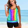 Женские купальники Танкини 2 шт. Купальник Фиолетовый тай-дайинг Отпускные купальные костюмы
