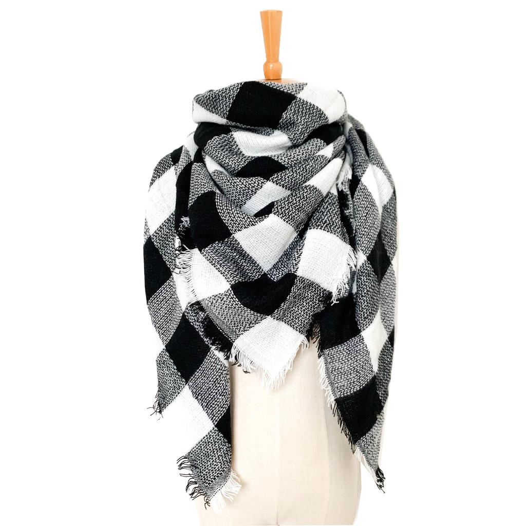 Осенне-зимний женский квадратный шарф из искусственного кашемира красного и черного цвета. Шарф.