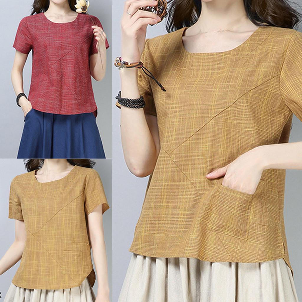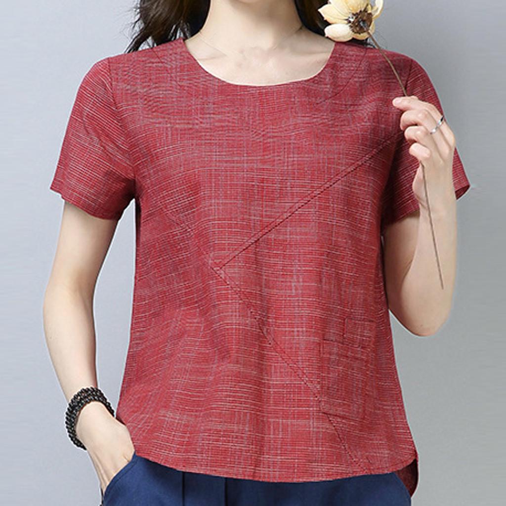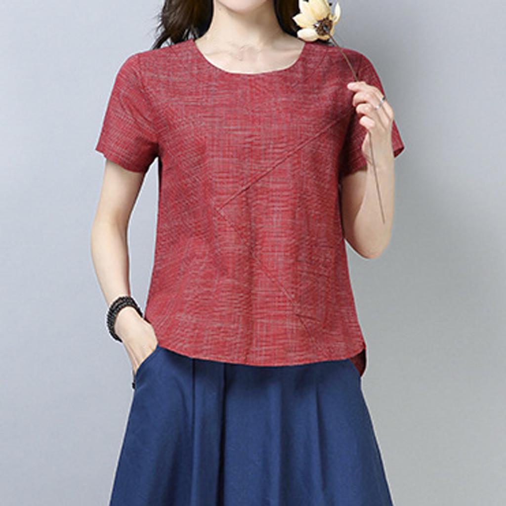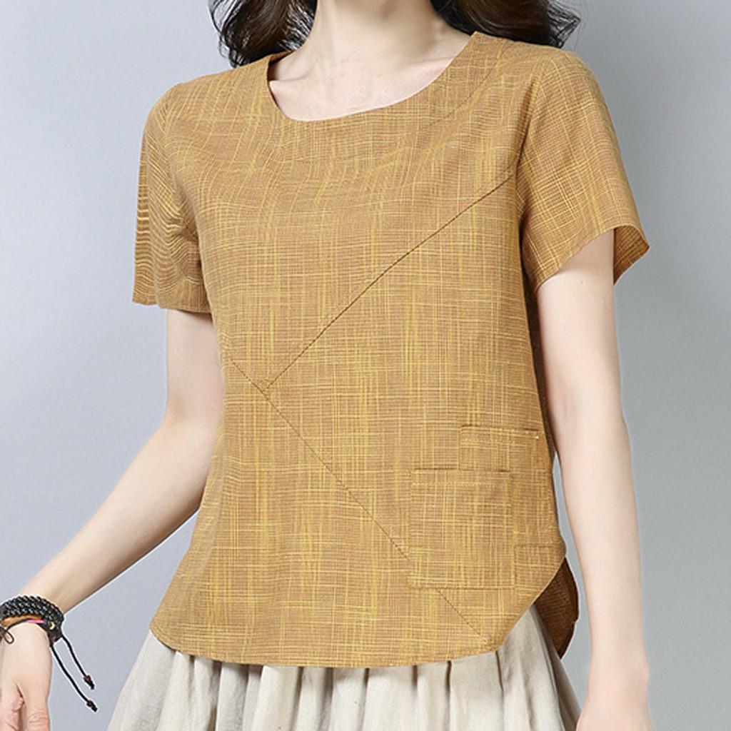 Женская лоскутная хлопковая льняная футболка с короткими рукавами и однотонным верхом
