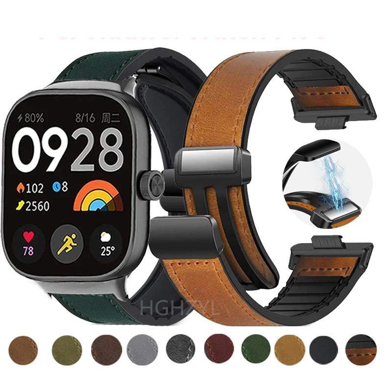 Ремешок для часов Магнитная застежка Силиконовый + кожаный ремешок для Xiaomi Redmi Watch 4 Браслет Ремешок для часов для iWatch Redmi Watch 4 Аксессуары для браслета