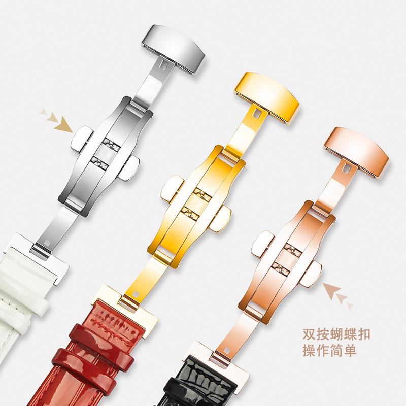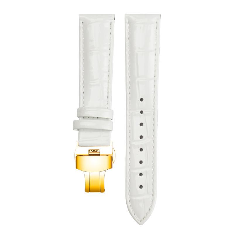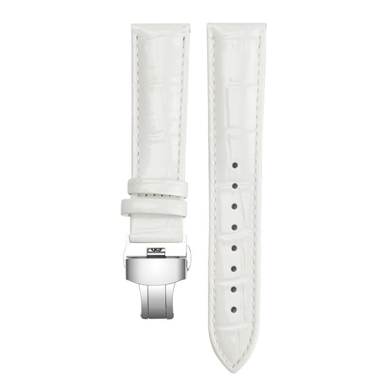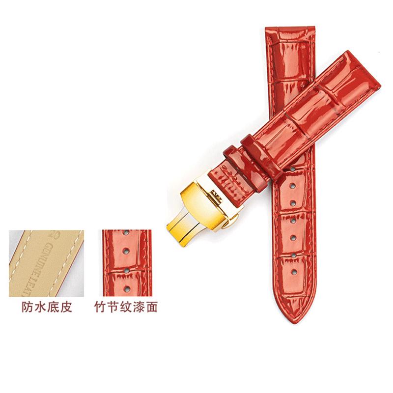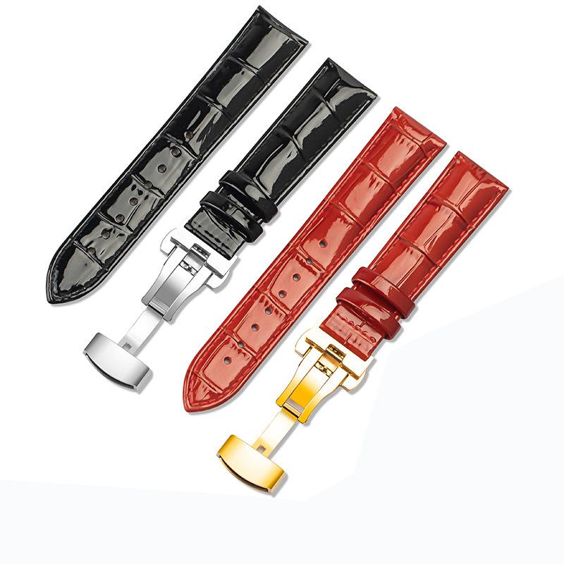 Ремешок для часов из натуральной кожи, браслеты 12 мм, 14 мм, 16 мм, 18 мм, 20 мм, красный, черный, белый, фиолетовый, ремешок для часов с пряжкой-бабочкой, блестящий ремешок для запястья